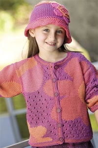 As a compilation of previously published Classic Elite desgins, some of the designs use yarns that are no longer available. The editors attempted to address this in their General Pattern Instructions section, but there’s one yarn whose suggested substitutions I find lacking — the Skye Tweed. None of the suggested substitutes are a tweed, and three of the four subs are discontinued themselves! It’s possible that given print production deadlines they weren’t able to suggest an available substitute. However, given that a tweed yarn has such an impact on a design, they would have done readers a service by reknitting the tweed garments in a currently available non-tweed yarn.