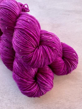 The “Huckleberry” colorway was born when I was planning to dye something else, but picked up the wrong container of dye powder and dropped it into the mix without checking which one I was holding. At that point it was too late to fix it, so I just went with it and came up with a new color.