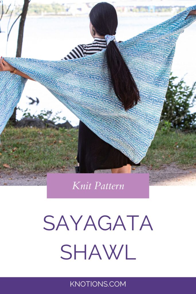 In Mosaic knitting, you work one color at a time. Most Mosaic patterns use garter stitch. In this pattern, while the borders / edges and the background color are both knitted in garter stitch, the main motif in contrasting color is knitted in stockinette stitch, creating a different texture to highlight the Sayagata design.