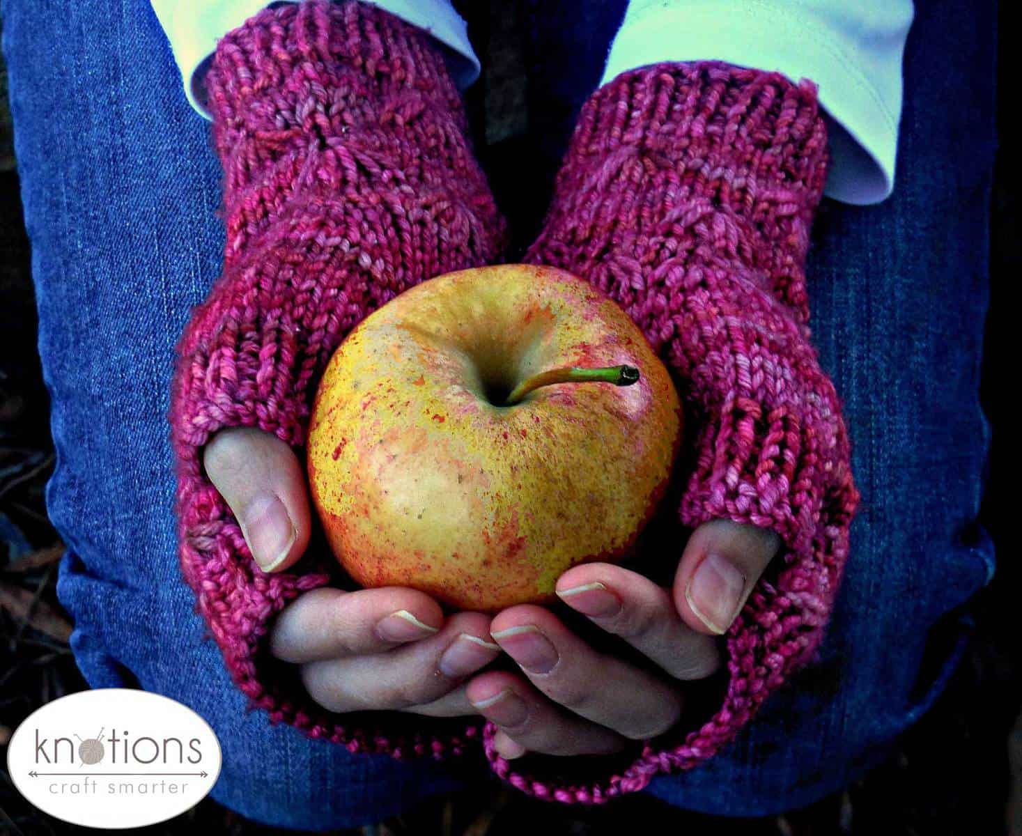 This pattern is worked in the round from the bottom up, with no shaping and a thumb gusset.