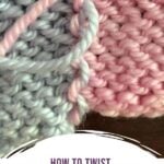 Row 1: Knit 9 in MC. Twist yarns. Knit 9 in CC.