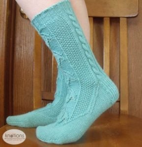This pattern is worked in the round from the top down. It includes a slipped stitch heel flap and rounded toe.